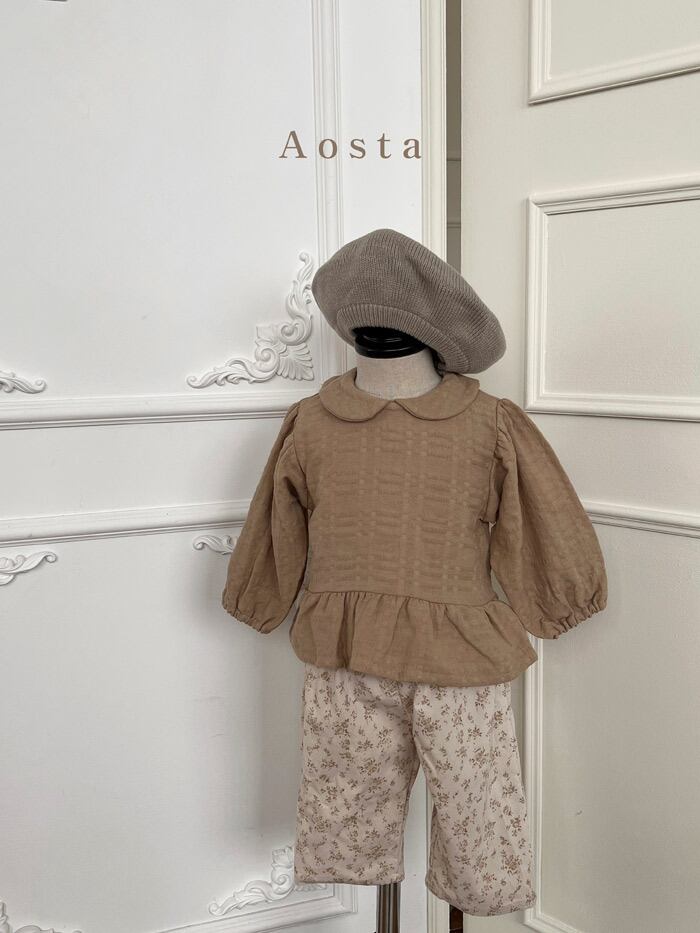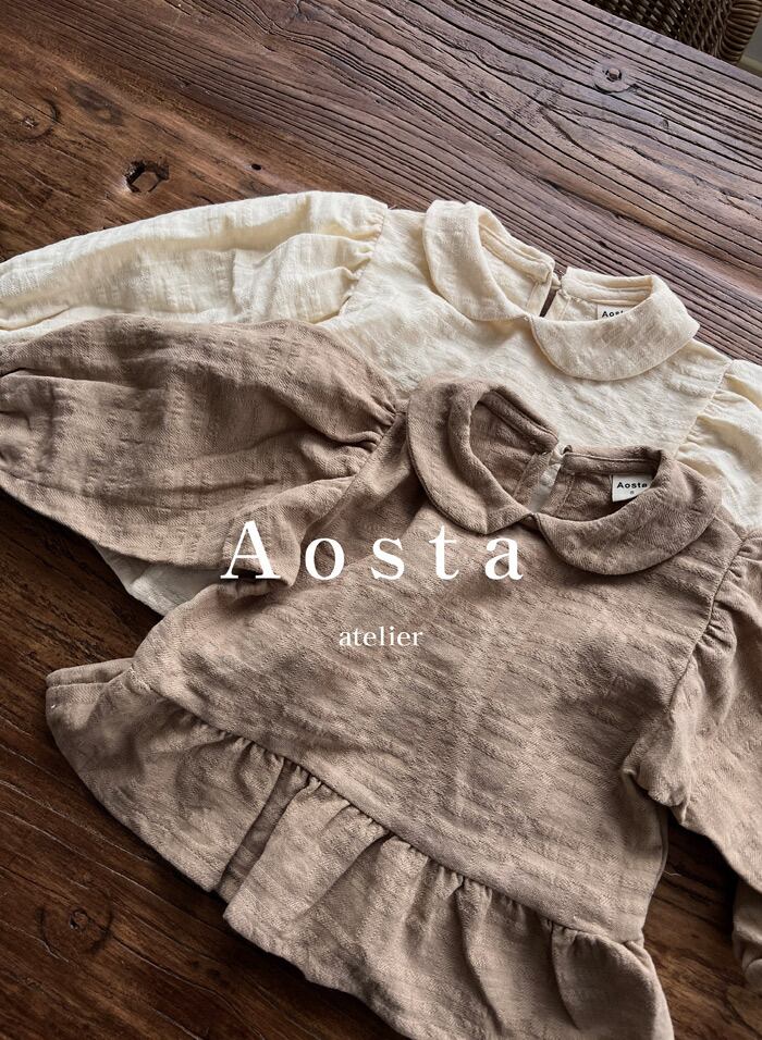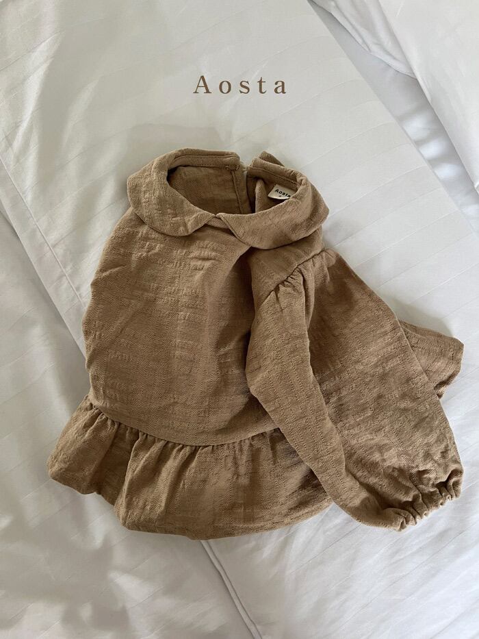 【即納】Aosta 2022aw ティーコットン丸襟ブラウス カラー/アイボリー/ブラウン サイズ/着丈/身幅/袖丈 S(80)/28/28/23 M(90)/30/30/24