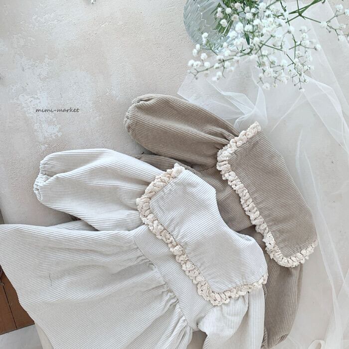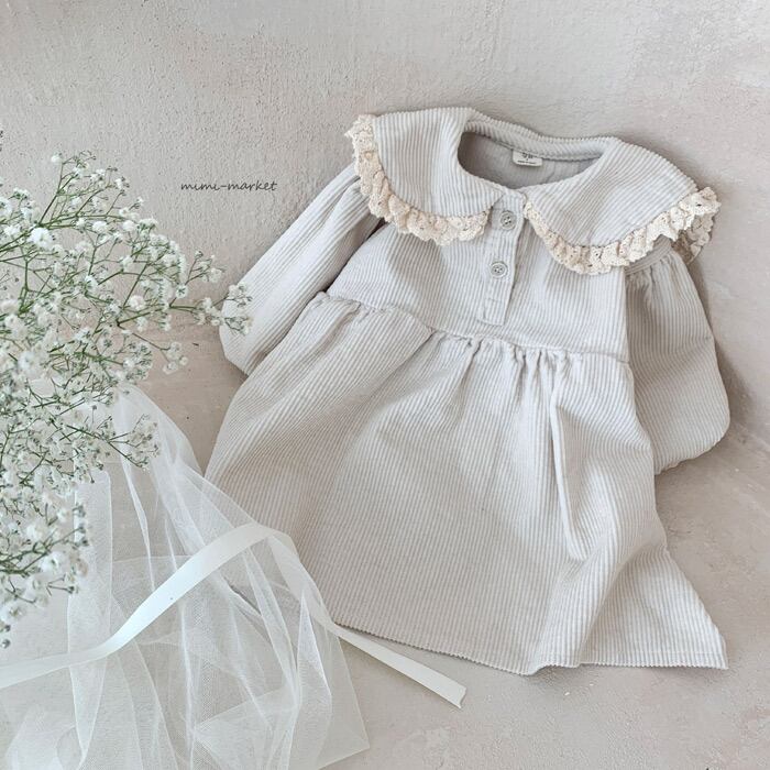 【即納】mimi-market 2022aw リブレースワンピース カラー/クリーム、カーキ サイズ/着丈/身幅/袖丈 1(12m)/43/34/18 2(18m)/45/36/21