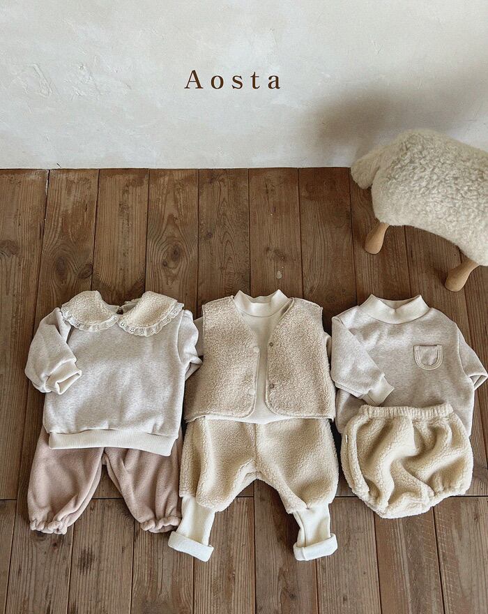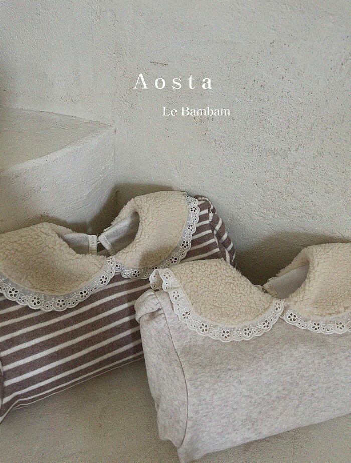 【即納】Aosta 2022aw 襟付きカラートレーナー カラー/オートミール、ストライプ サイズ/着丈/身幅/袖丈 S(0-1y)/33/31/20 M(1-2y)/36/33/23