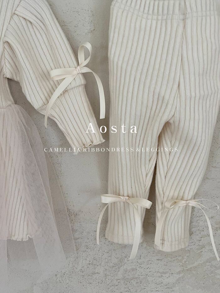 【即納】Aosta 2022aw リブリボンレギンス カラー/アイボリー、ベージュ サイズ/総丈/ウエスト S(0-1y)/41/17 M(1-2y)/43/19
