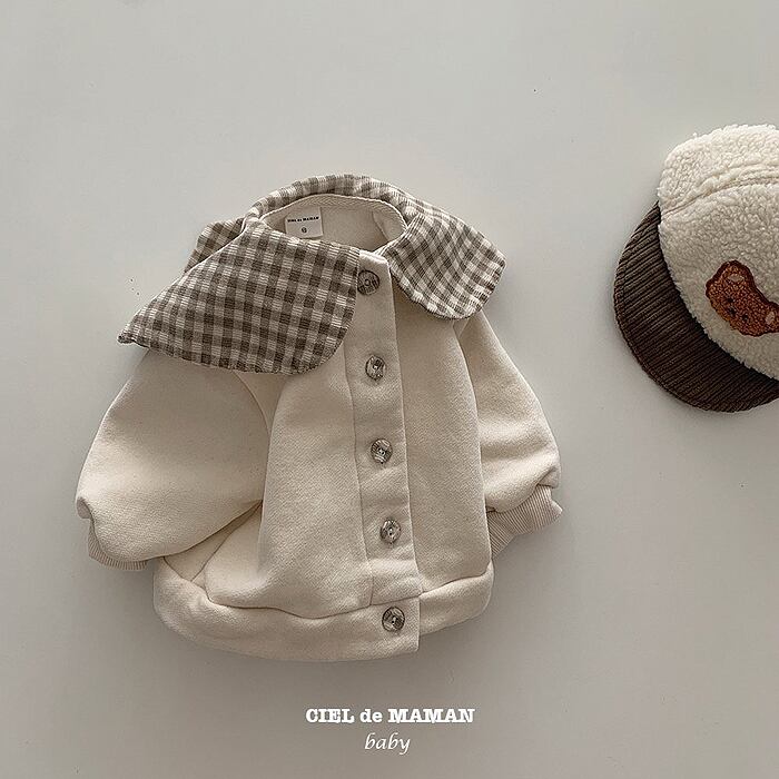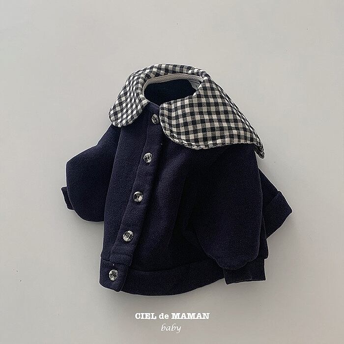 【即納】CIEL de MAMAN 2022aw チェック襟トップス カラー/アイボリー、ネイビー サイズ/着丈/身幅/袖丈 S(6-12m)/32/33/20 M(12-15m)/34/35/22
