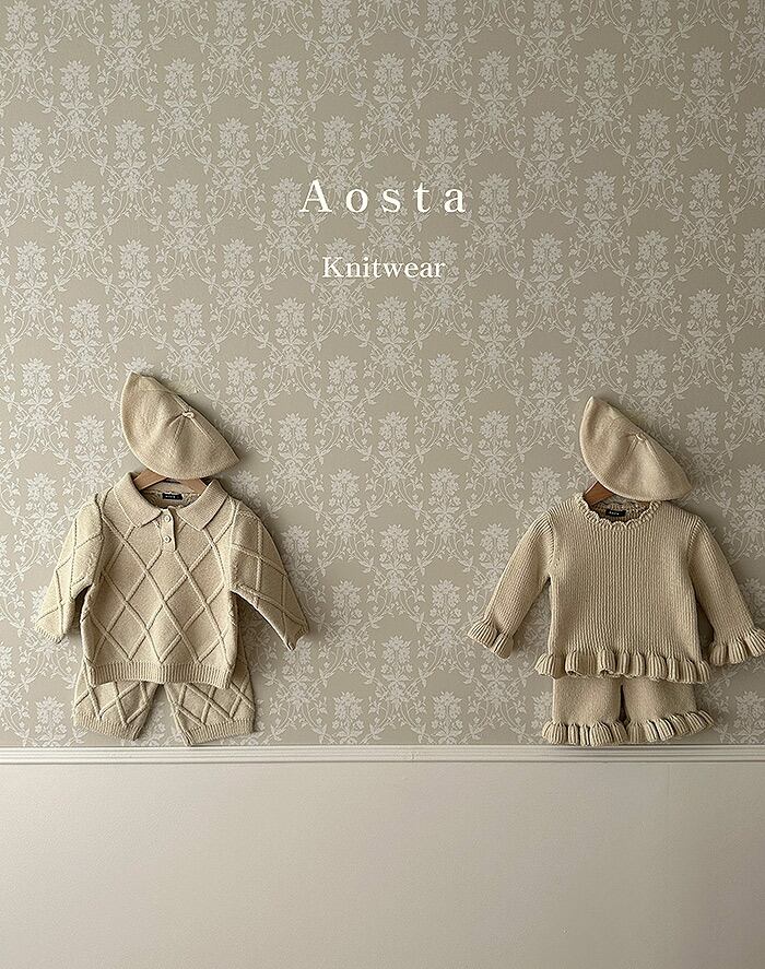 【即納】Aosta 2023ss フリルニットパンツ カラー/クリーム/モカ サイズ/S(0-2y)/M(2-3y) サイズ/着丈/ウエスト S(0-2y)/31/22 M(2-3y)/36/24