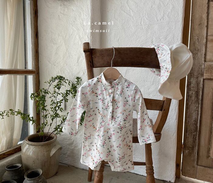 【即納】La.camel 2023ss flower rash guard color:ivory size:XS(80)/S(90)/M(100)
